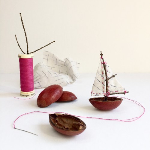 Working on films like Sea Wolf has been important to my artistic journey, as I got to see production designs come to life on set. Set design can make a story more convincing, and the thoughtful work of scenic painters, sculptors, and carpenters is inspiring. As production designer in my tiny world, I like to create items out of the materials my characters might find on a forest trail – what could a tiny woodland creature make from a twig, a torn scrap of cloth and a nutshell? This tiny toy boat features in Rumie Goes Rafting.