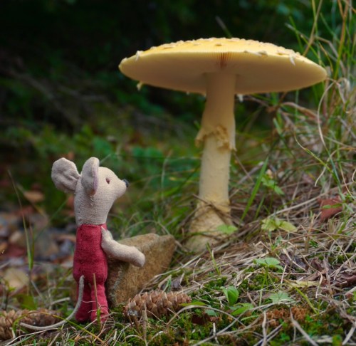 Below are some of the spots where I shoot, captioned with the story of how I create in nature, including a few photos of a practice toy mouse I used to use, before designing and making the puppets for my book.